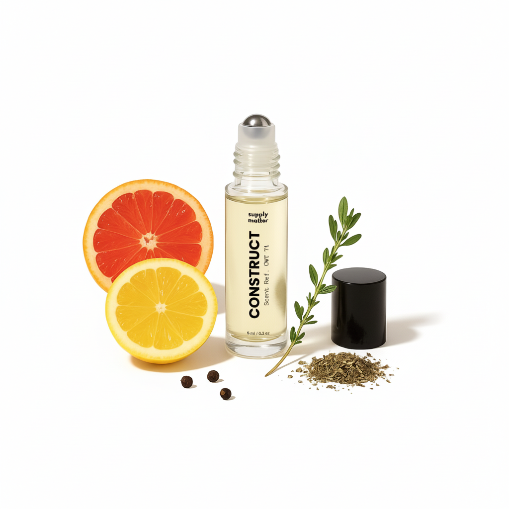 Earthy vetiver and zesty orange intertwine, grounded by rich mineral notes for a sophisticated balance.