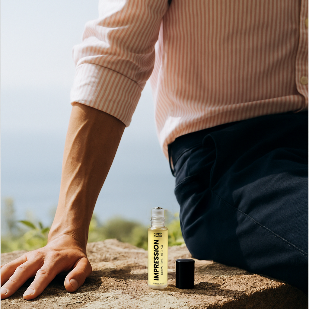 Roll-on cologne uses a small rollerball to apply a thin layer of fragrance oil directly onto your skin. It activates with your body heat and settles into your natural skin chemistry throughout the day.
